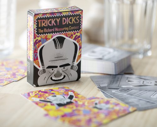 Support the creators you love with the hilarious game, Tricky Dicks! You'll be stretching the truth and your imagination as you compete to have the Longest, Shortest, Thickest, or Thinnest Richard in your hand. But don't worry, everyone's Richard is unique – it's not the size of your deck that matters, it's how you play your cards!